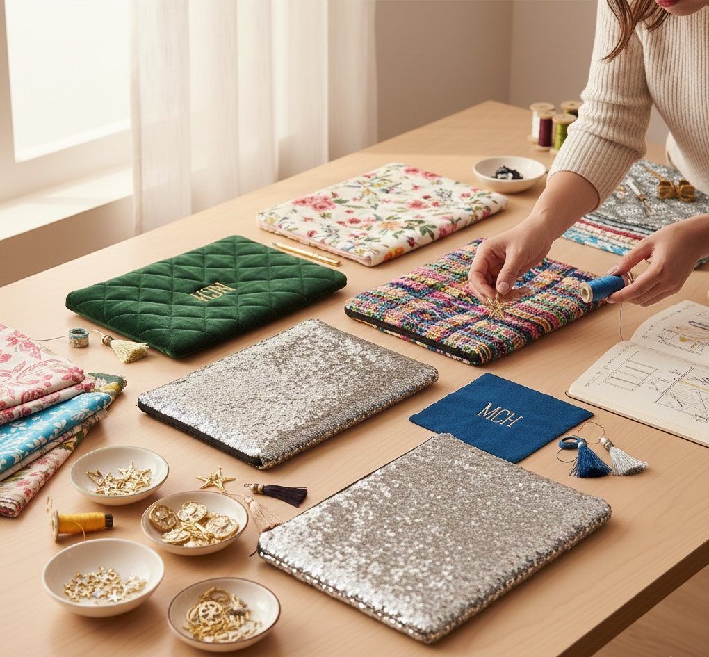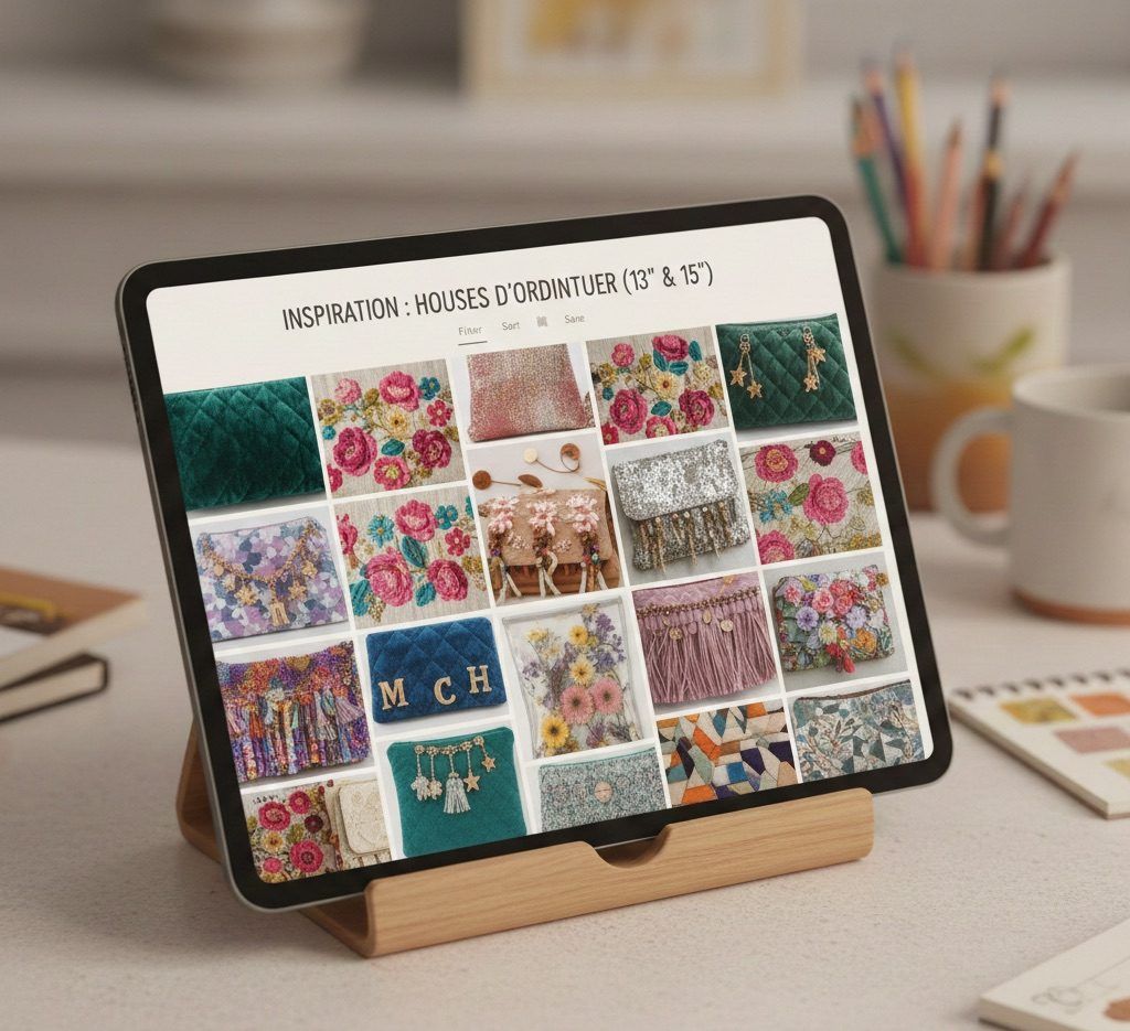Chaque modèle présenté est une source d’idées : aucune pochette n’est reproduite à l’identique, chacune est pensée sur mesure.